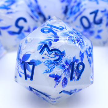 نرد زهور الياقوت الغامض ، طقم نرد DND مصنوع يدويًا من الراتينج متعدد السطوح لألواح الزنزانات والتنين