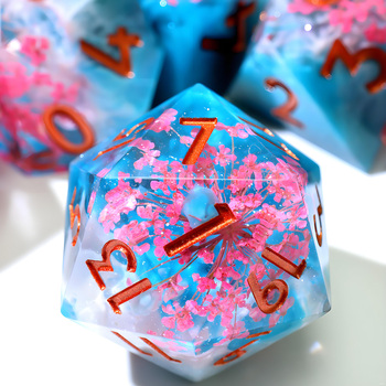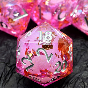 Handmade rosa poliédrica resina líquida DND Dice Set com Gold & Silver Foil para Dungeons and Dragons RPG Board Games-Liquid12