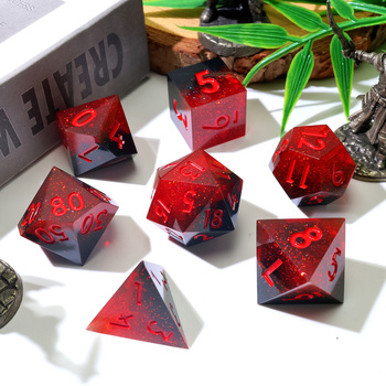 Handmade Red & Black Resina DND Dice Set com Fiery Magic, épico poliédrico RPG Dice para Dungeons and DragonsBoard Games-N19