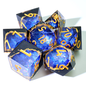 Набор многогранных РПГ-игральных Кубков из синей геоды, ручной работы из смолы DND-кости для подземелий и драконов и настольных игр, Adventures-G4 для ролевых игр